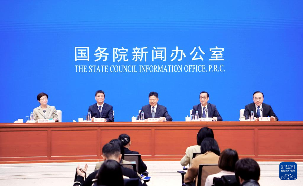 11月1日,國務(wù)院新聞辦公室在北京舉行新聞發(fā)布會(huì),商務(wù)部副部長(zhǎng)盛秋平、上海市人民政府副秘書長(zhǎng)劉平、商務(wù)部市場(chǎng)運(yùn)行和消費(fèi)促進(jìn)司司長(zhǎng)李剛、上海市商務(wù)委員會(huì)主任朱民介紹中國國際消費(fèi)中心城市有關(guān)消費(fèi)月活動(dòng)情況,并答記者問。新華社記者 潘旭 攝
