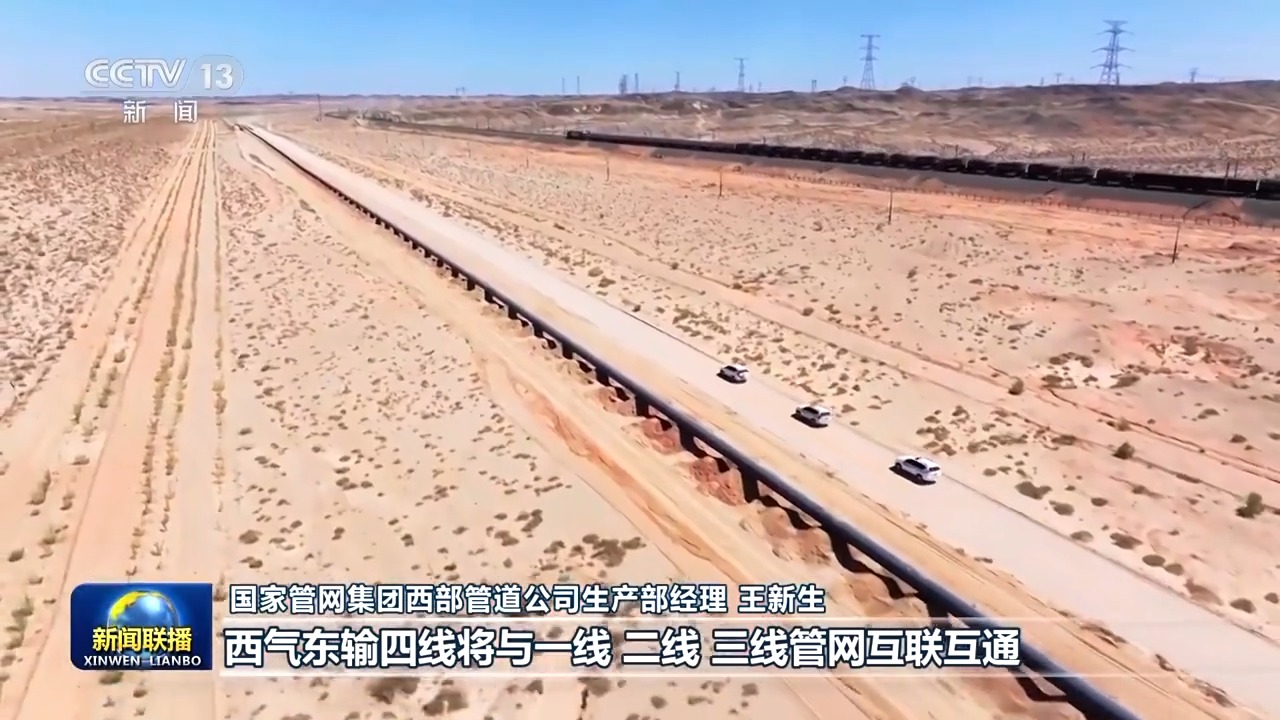 國家管網(wǎng)集團西部管道公司生產(chǎn)部經(jīng)理 王新生:西氣東輸四線將與一線、二線、三線管網(wǎng)互聯(lián)互通,西氣東輸管道系統(tǒng)年輸送能力,將從770億立方米提高到920億立方米,日輸送能力達到2.6億立方米。