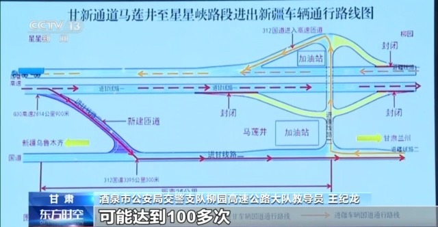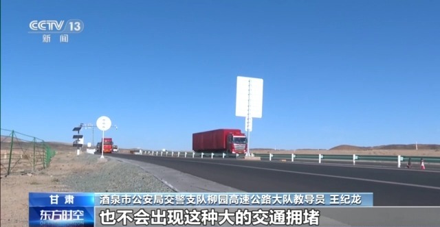 酒泉市公安局交警支隊柳園高速公路大隊教導(dǎo)員 王紀龍:我們每年這個路段的交通擁堵,可能達到100多次。