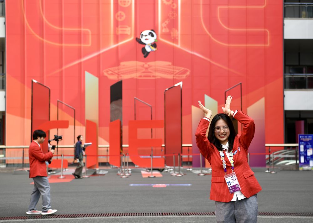 11月4日,志愿者在第七屆中國(guó)國(guó)際進(jìn)口博覽會(huì)舉辦場(chǎng)地——國(guó)家會(huì)展中心(上海)留影。