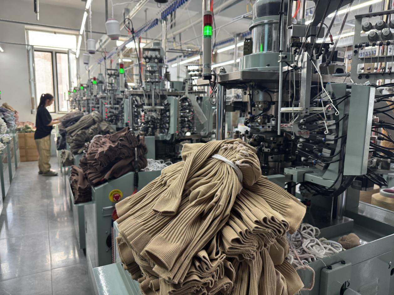 當(dāng)前,小北河鎮(zhèn)的一些襪企不斷加大投入“智改數(shù)轉(zhuǎn)”,正逐步從4代電腦機(jī)向5代智能機(jī)升級(jí),全新的產(chǎn)業(yè)活力不斷釋放。澳笠森襪業(yè)的生產(chǎn)車間里,織襪工人龐大姐把生產(chǎn)好的襪子整理好拿到成品區(qū):“不到3分鐘,就能織出一雙棉襪,我一個(gè)人能管十幾臺(tái)機(jī)器?!?/p>