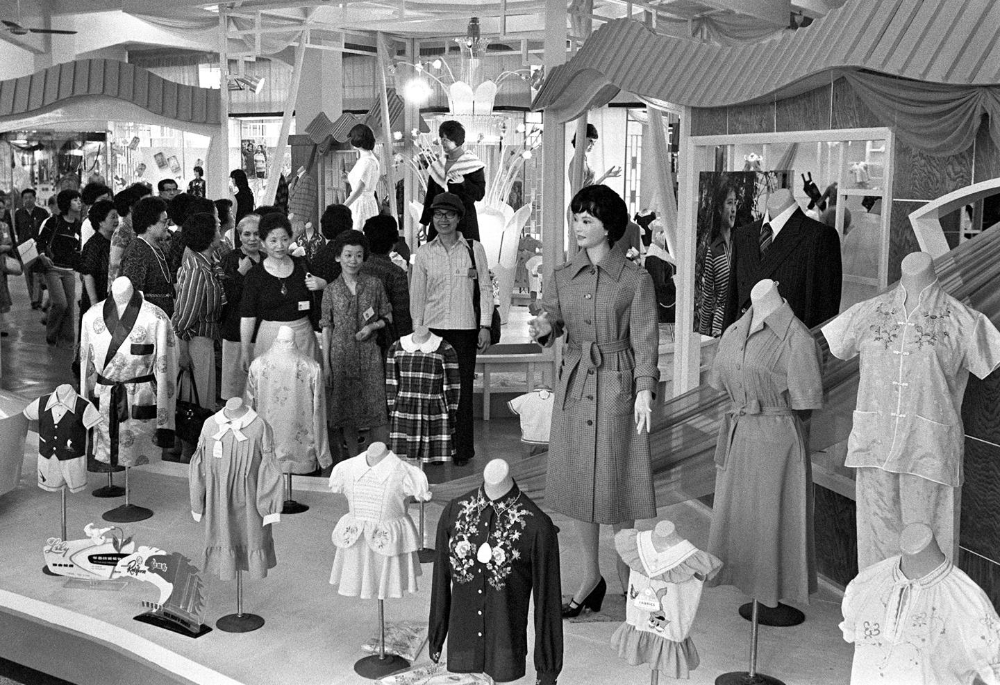 1979年第45屆廣交會上展售的各種服裝。新華社記者 李燕明 攝
