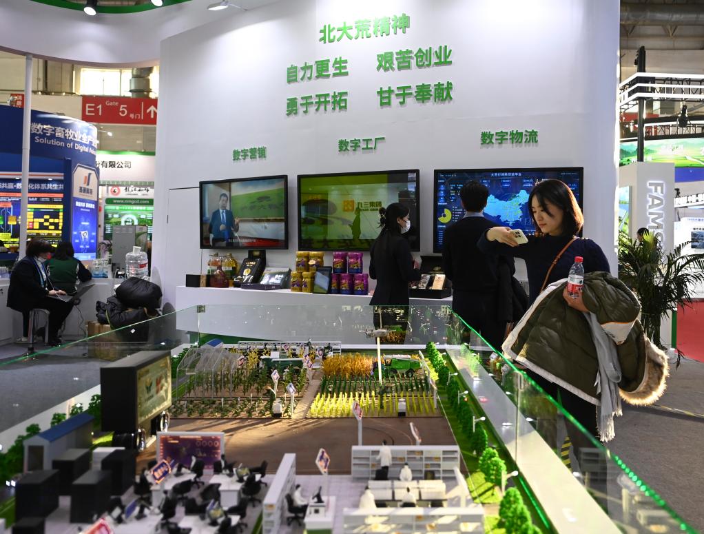 2023年11月30日,參觀者在首屆中國國際供應(yīng)鏈促進博覽會(簡稱“鏈博會”)綠色農(nóng)業(yè)鏈展區(qū)北大荒集團展臺前觀看智慧育種解決方案。新華社記者 蔡湘鑫 攝