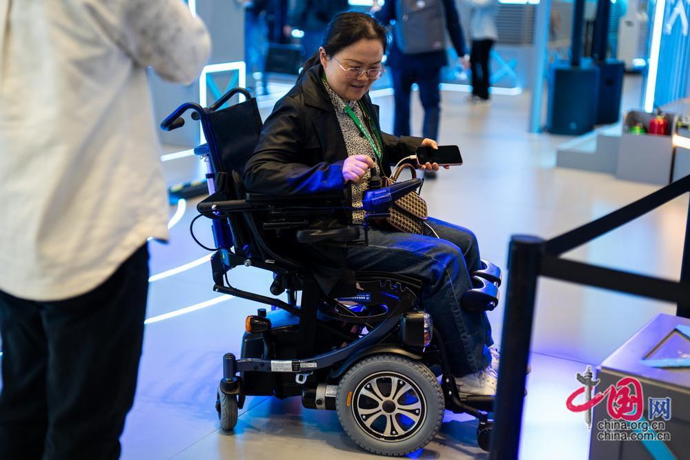 觀眾在現(xiàn)場體驗(yàn)智能輪椅。中國網(wǎng)記者