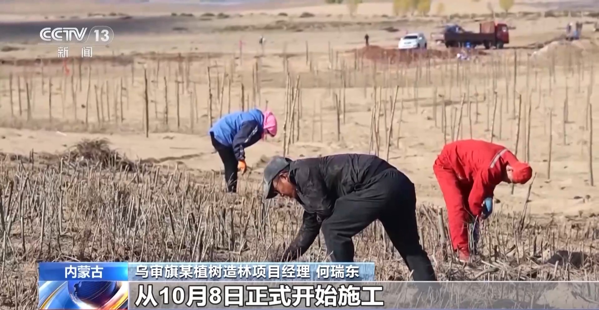 烏審旗某植樹造林項(xiàng)目經(jīng)理 何瑞東:挖樹坑嚴(yán)格保證至少在1米,保證種植深度,及時(shí)澆水,保證每棵樹都要種到位、澆到位。從10月8日正式開始施工,總占地治理面積是3225畝。