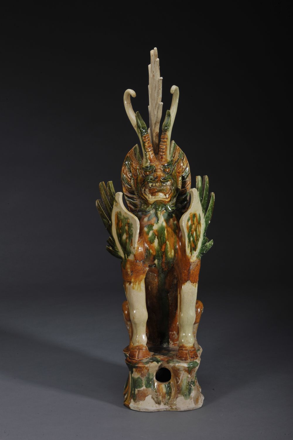 2019年出土于河南省洛陽(yáng)市洛龍區(qū)潘寨村的唐代三彩鎮(zhèn)墓獸。(洛陽(yáng)市考古研究院供圖)
