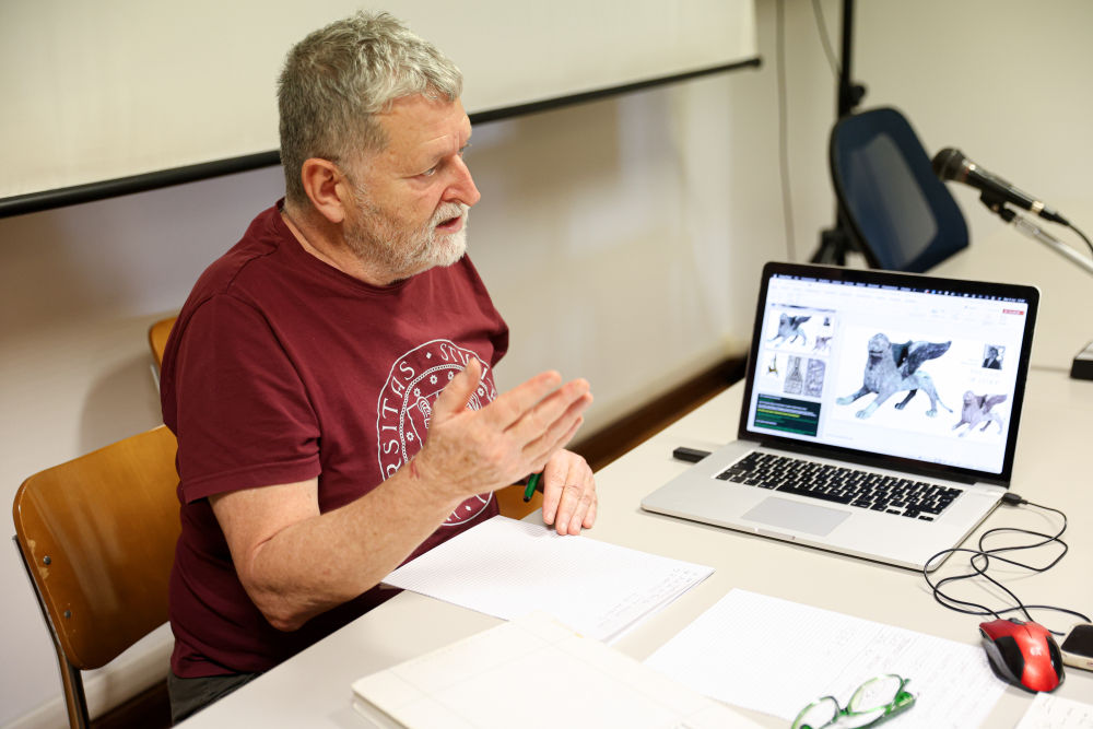 11月5日,意大利帕多瓦大學(xué)文化遺產(chǎn)學(xué)院教授馬西莫·維達(dá)萊介紹“威尼斯之獅”研究相關(guān)情況。新華社記者李京攝
