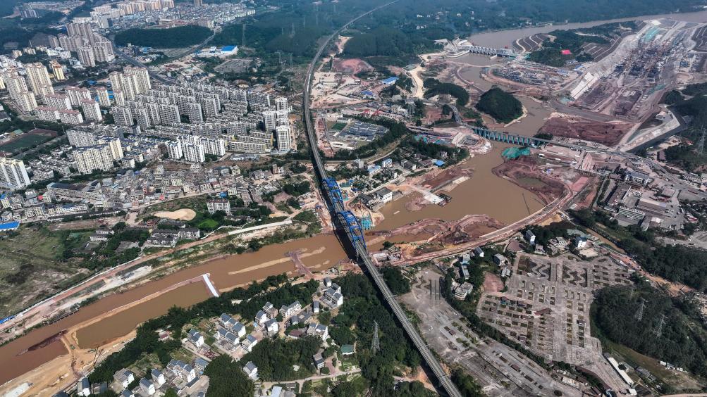 這是廣西平陸運河青年樞紐與市區(qū)銜接處的建設(shè)工地(2024年10月11日攝,無人機照片)。新華社記者 張愛林 攝