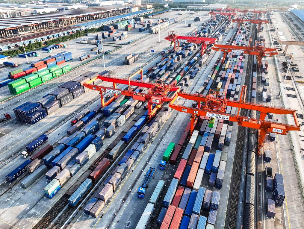 這是陸海新通道重慶無水港(2024年10月28日攝,無人機照片)。新華社記者 王全超 攝