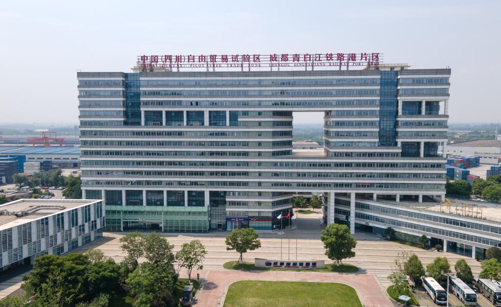 中國(四川)自由貿(mào)易試驗區(qū)成都青白江鐵路港片區(qū)(2024年6月13日攝,無人機照片)。新華社記者 唐文豪 攝