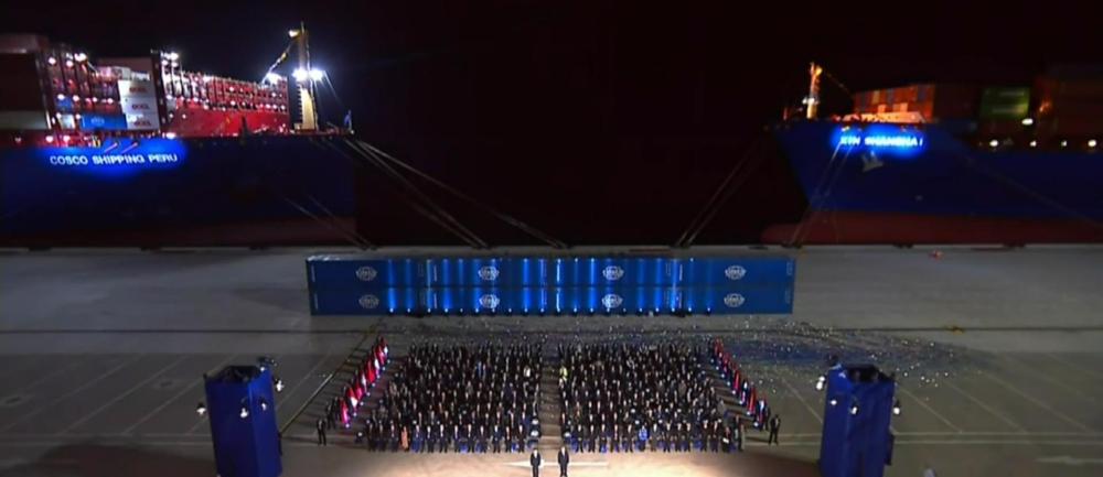 開港儀式現(xiàn)場停泊著兩艘集裝箱輪。其中一艘中遠“秘魯輪”剛剛抵港,而另一艘“新上海輪”即將離港前往上海?!皬腻X凱到上海”,已成為現(xiàn)實。