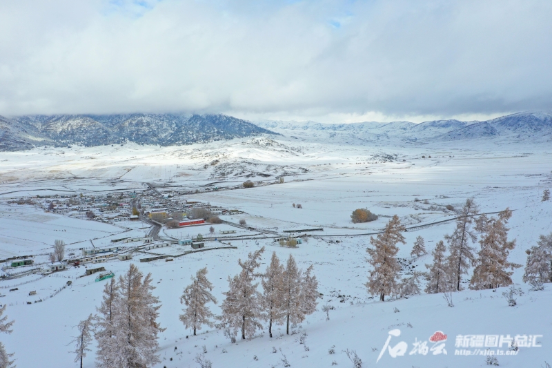 11月7日,俯瞰阿勒泰市切木爾切克鎮(zhèn)拜格托別村雪景。劉是何 攝