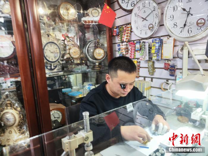不遠(yuǎn)處,聚亨鐘表店的王晴川正低頭專(zhuān)注修表。這家修表店已經(jīng)傳承了三代人,五年出徒,十年大成,他在此開(kāi)店已二十三年。秒針的滴答作響中,時(shí)間被賦予了新的意義和價(jià)值。