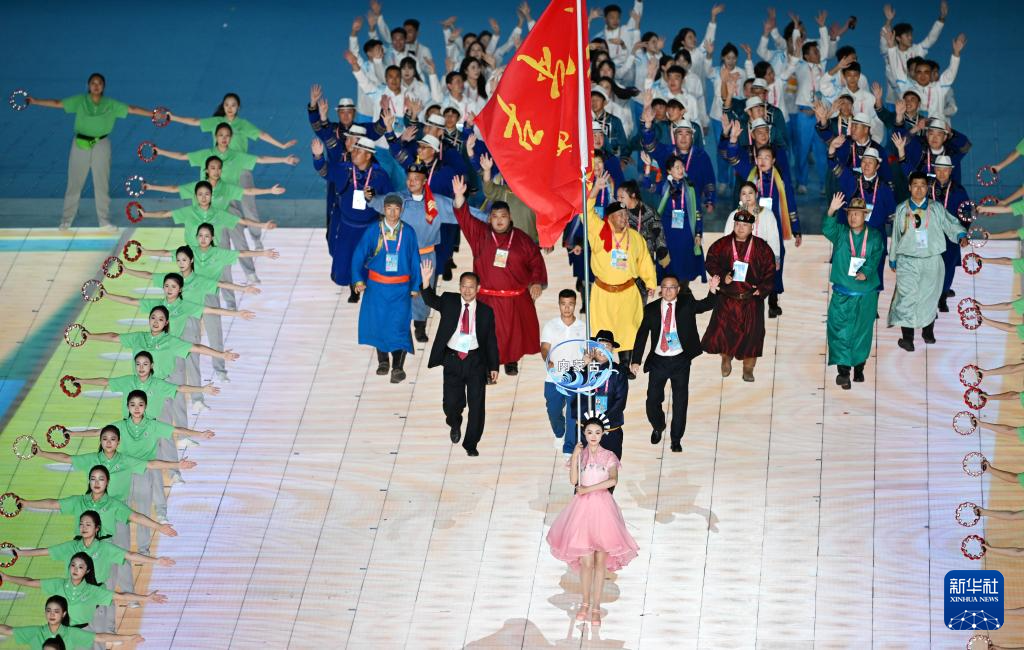 11月22日,內(nèi)蒙古自治區(qū)代表團(tuán)在開幕式上入場。