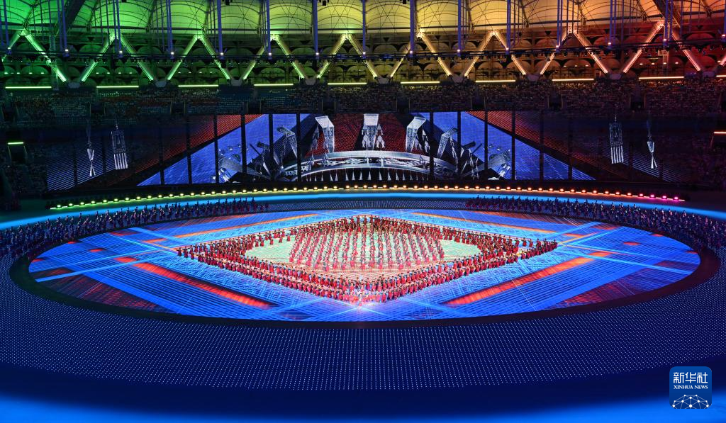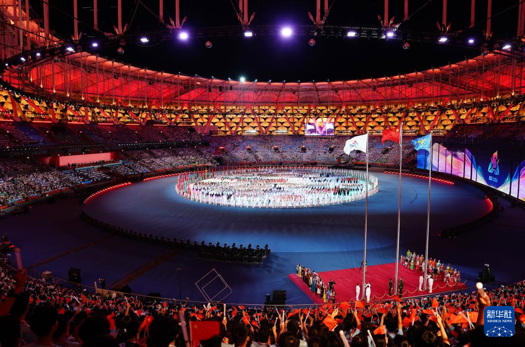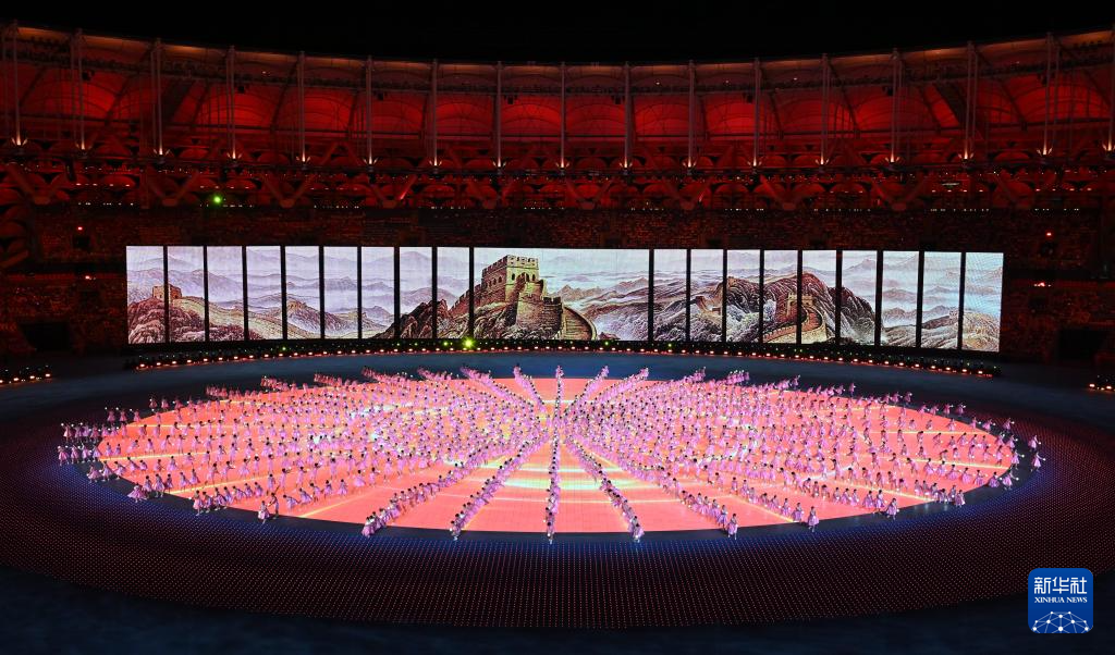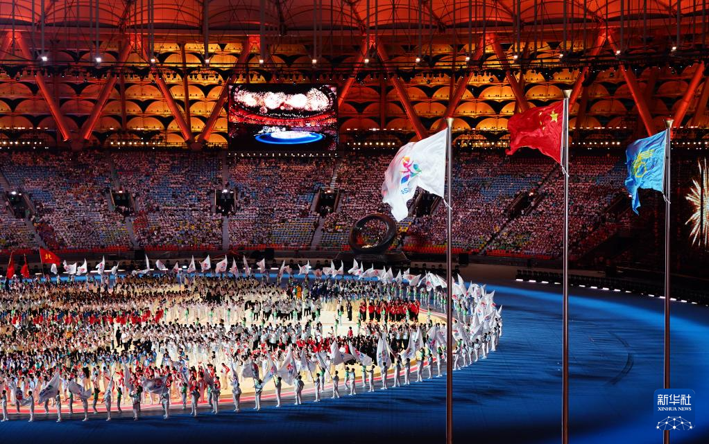 11月22日,開幕式現(xiàn)場升起中華人民共和國國旗、中華人民共和國少數(shù)民族傳統(tǒng)體育運(yùn)動(dòng)會(huì)會(huì)旗和中華人民共和國第十二屆少數(shù)民族傳統(tǒng)體育運(yùn)動(dòng)會(huì)會(huì)旗。