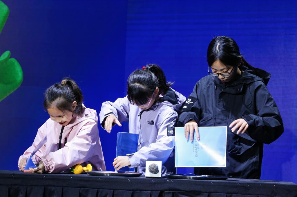 11月23日,小觀眾在浙江杭州舉辦的2024菠蘿科學獎現(xiàn)場進行科學實驗。新華社發(fā)