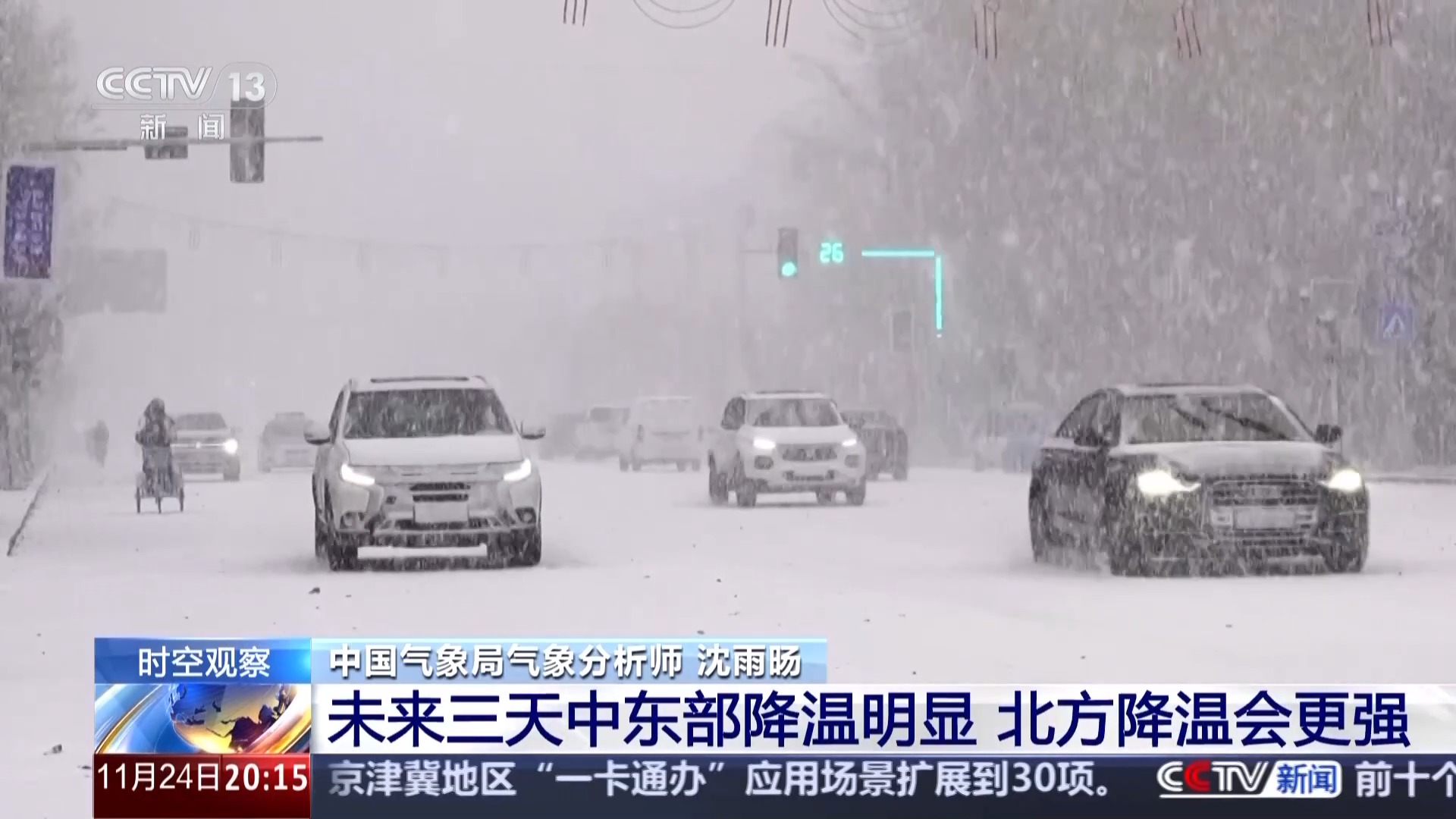 這次寒潮因為有冷暖空氣的相遇,所以雨雪天氣也是比較廣泛。北方的不少地方會出現(xiàn)降雪或者是雨雪相態(tài)的轉(zhuǎn)換,尤其是在內(nèi)蒙古的東部、東北這一帶,25到26日要防范強降雪天氣,而且東北地區(qū)還是以濕雪為主,很容易出現(xiàn)道路結(jié)冰。提醒大家出門時多關(guān)注路況,注意安全。