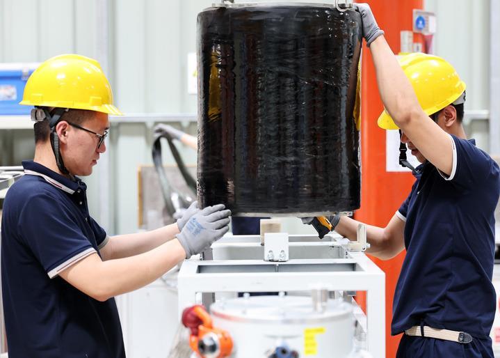沈陽微控飛輪技術股份有限公司的工人在進行組裝工作(2024年6月13日拍攝)。 新華社記者 李鋼 攝
