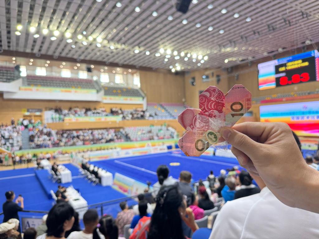 收到“愛心紀(jì)念鈔”,彝族小伙王子豪驚喜之余有些感動(dòng)。兩人很快成了朋友,賽事之外切磋武藝,聊些年輕人間的“家長(zhǎng)里短”。