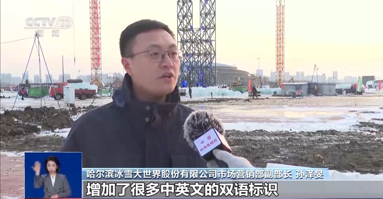 哈爾濱冰雪大世界股份有限公司市場營銷部副部長 孫澤旻:增加了很多中英文的雙語標(biāo)識,同時(shí)增加了英文的導(dǎo)游導(dǎo)覽服務(wù)。為了方便外國游客可以在園區(qū)內(nèi)購票,增加了可以識別護(hù)照、識別國際支付的支付系統(tǒng)和購票系統(tǒng)。