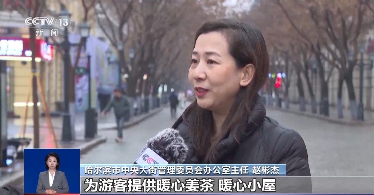 哈爾濱市中央大街管理委員會辦公室主任 趙彬杰:我們今年主打的就是一個(gè)貼心、細(xì)心,我們號召街區(qū)的商家企業(yè)為游客提供暖心姜茶、暖心小屋。爭取讓每一位來到中央大街的游客,在體驗(yàn)冰雪之美的同時(shí),更多感受到“爾濱”的熱情。