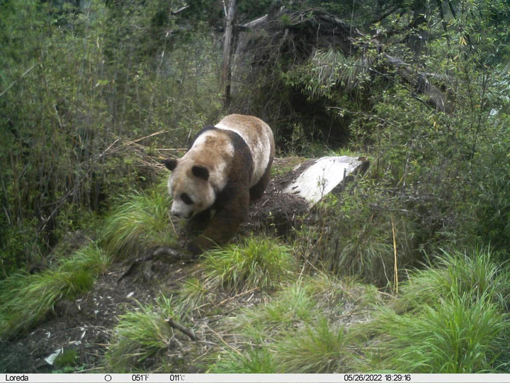 這是大熊貓國家公園唐家河片區(qū)白熊坪區(qū)域的一臺(tái)紅外相機(jī)拍攝到的野生大熊貓畫面(2022年5月26日攝)。新華社發(fā)(大熊貓國家公園唐家河片區(qū)供圖)