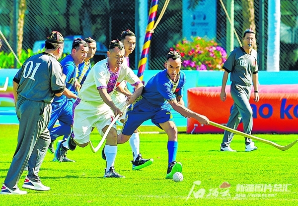 11月24日上午,男子珍珠球第二輪小組賽中山東隊(duì)與新疆隊(duì)比拼。比賽結(jié)束后,兩隊(duì)在場(chǎng)外同喊口號(hào)、互贈(zèng)紀(jì)念品;26日,民族大聯(lián)歡文化活動(dòng)上,全國(guó)各地代表團(tuán)相聚“天涯海角”景區(qū),各族運(yùn)動(dòng)員在海邊延展出一條綿長(zhǎng)的“民族風(fēng)景線”;27日,新疆代表團(tuán)在駐地酒店精心籌備了聯(lián)歡會(huì),新疆、湖南、云南、黑龍江等地代表團(tuán)歡聚一堂,共敘友情。