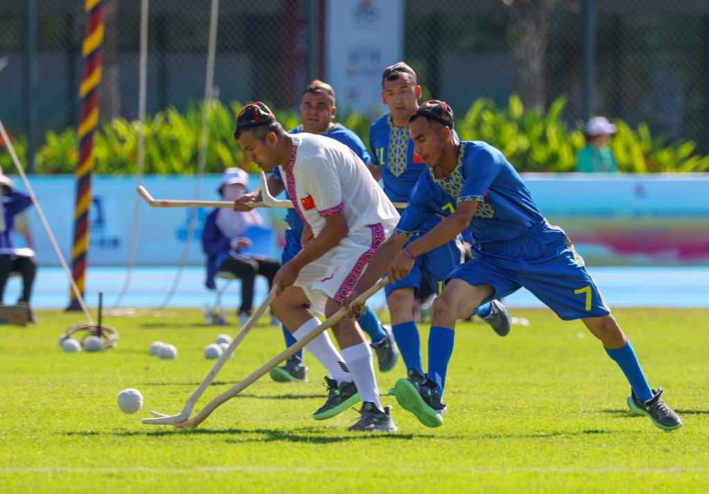 山海難擋情意濃。在24日的表演項(xiàng)目里,10多名來自新疆和田地區(qū)于田縣各行各業(yè)的隊(duì)員帶來了麥熱球表演。山高路遠(yuǎn),他們歷時(shí)三天才抵達(dá)三亞?!拔覀兿胂蛉珖嗣裾故钧湡崆蜻@項(xiàng)運(yùn)動(dòng),在場外和大家多交流,讓各族人民了解南疆的發(fā)展變化?!标?duì)長吾買爾江說。