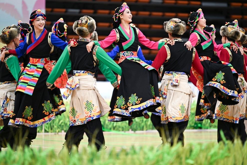 第十二屆全國少數(shù)民族傳統(tǒng)體育運(yùn)動會表演項(xiàng)目,四川隊(duì)選手表演《田間戲棋》