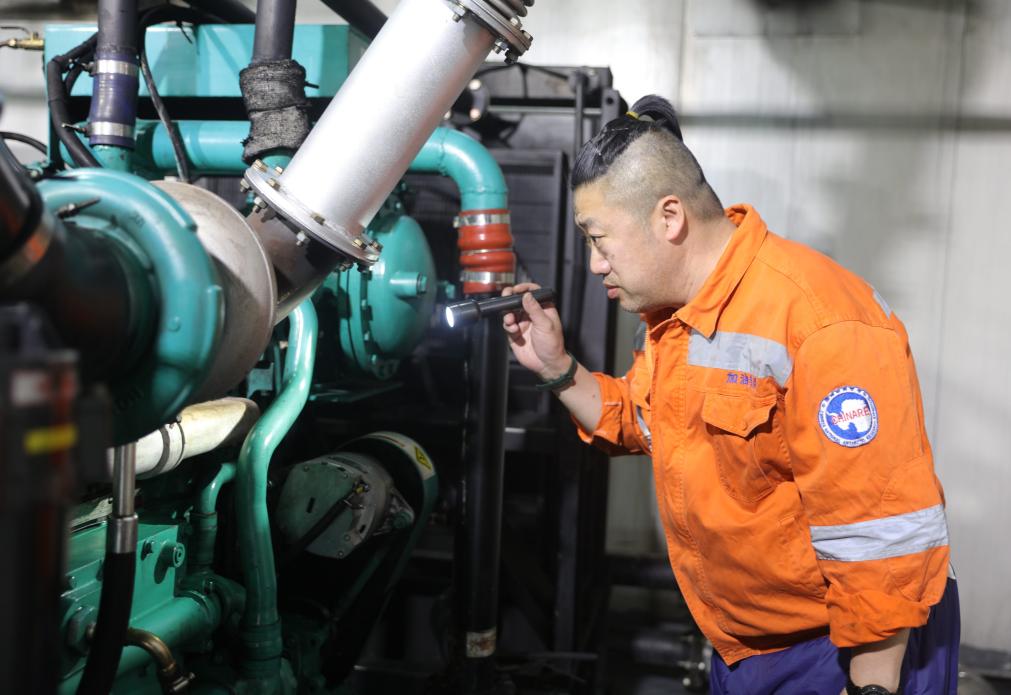 發(fā)電班班長張冬在對發(fā)電機(jī)進(jìn)行巡視檢查(12月1日攝)。新華社記者 黃韜銘 攝