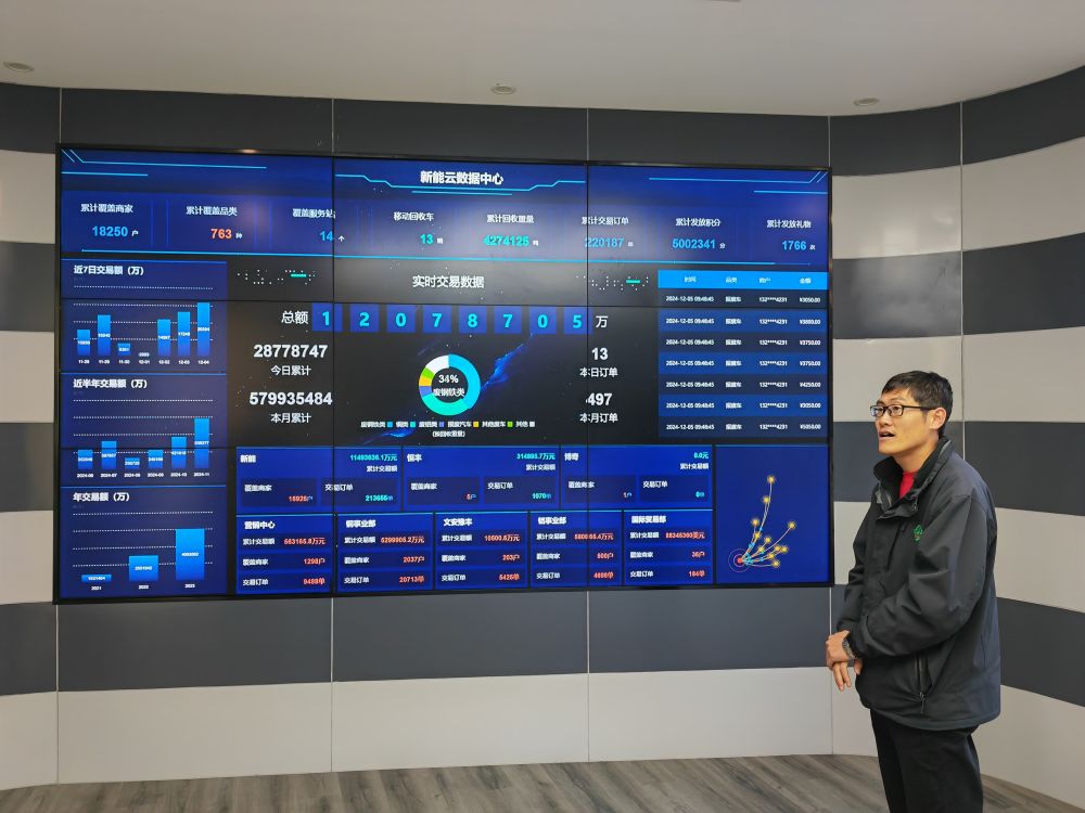 工作人員在新能云數(shù)據(jù)中心介紹新能公司的交易訂單情況。新華社記者 楊文 攝
