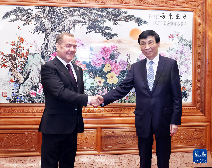 中共中央政治局常委、全國政協(xié)主席王滬寧12日在京會見俄羅斯統(tǒng)一俄羅斯黨主席梅德韋杰夫。