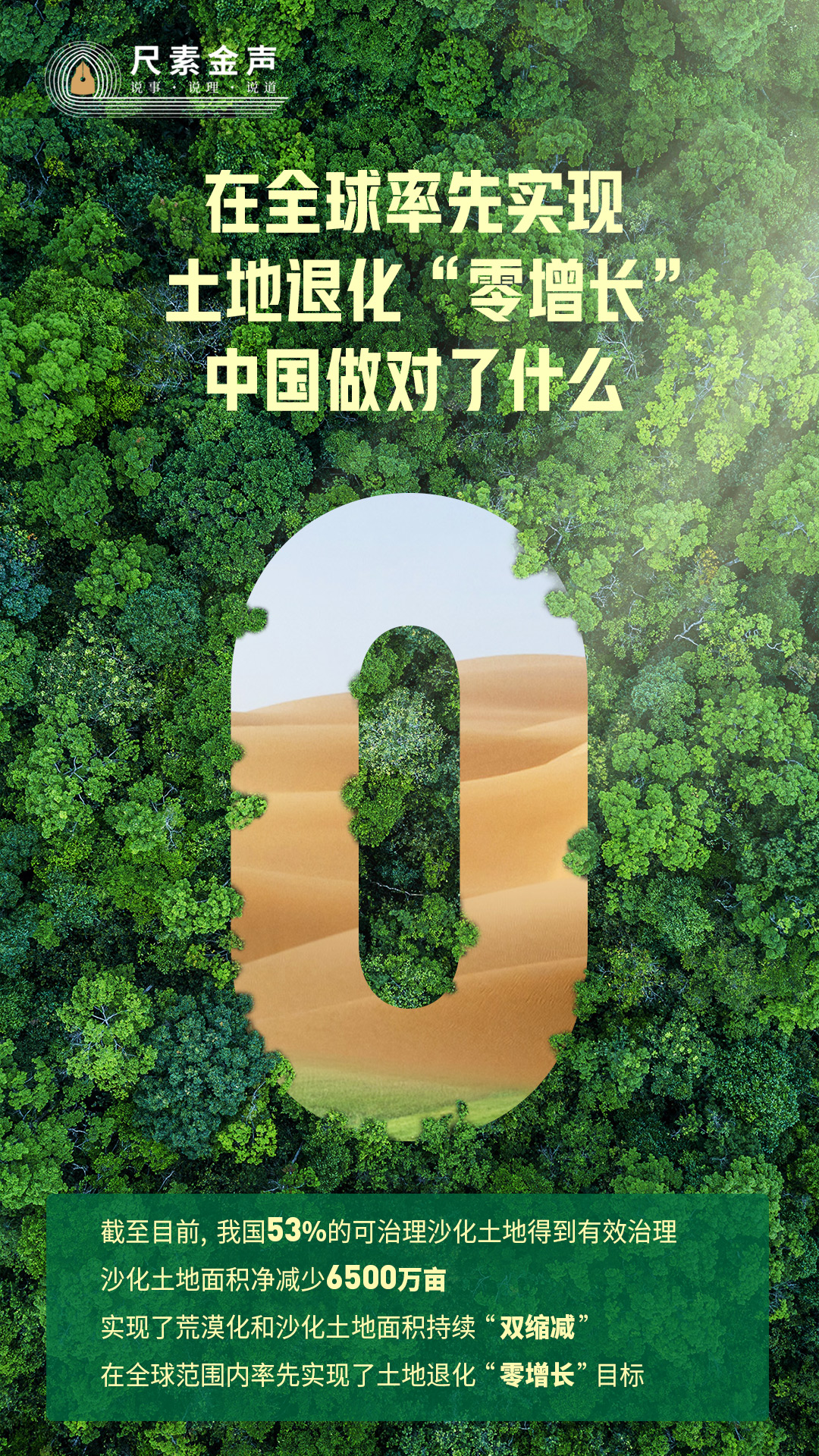 最新數(shù)據(jù)顯示,截至目前,我國(guó)53%的可治理沙化土地得到有效治理,沙化土地面積凈減少6500萬畝,實(shí)現(xiàn)了荒漠化和沙化土地面積持續(xù)“雙縮減”,在全球范圍內(nèi)率先實(shí)現(xiàn)了土地退化“零增長(zhǎng)”目標(biāo)。