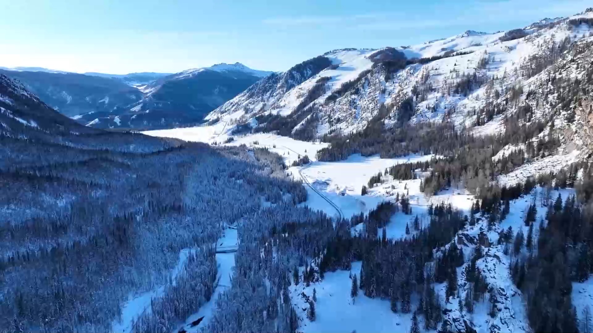 阿禾公路開通后,阿勒泰市至禾木景區(qū)的行程從6小時縮短至3小時。這一路猶如“油畫長廊”,游客可以目睹高山、森林、草原、湖泊、河流、濕地、峽谷、石林、古冰川遺跡等眾多自然景觀。冬日的阿禾公路有別樣的風景,山路蜿蜒曲折,路兩旁是白雪皚皚的高山,錯落有致的原始森林,還有陽光下晶瑩閃爍的雪原。