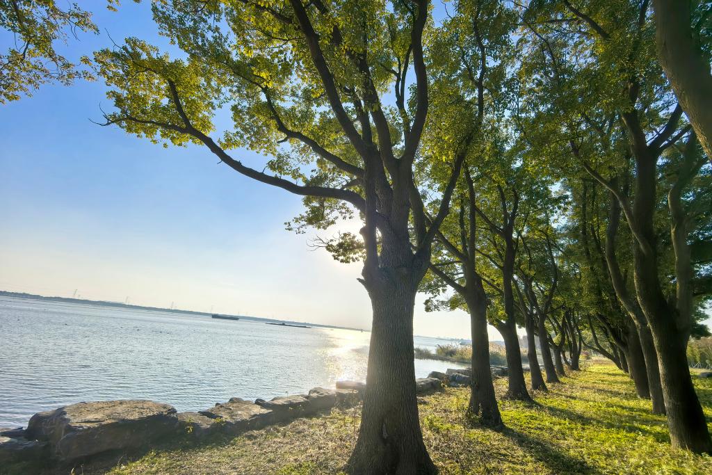 西起太湖、東到黃浦江的太浦河,是示范區(qū)的行洪通道,也是航運的黃金水道。河畔驛站里,人們可以一邊喝著咖啡一邊了解這條河的變遷——衛(wèi)星圖上,2017年沿河的碼頭、工廠、養(yǎng)殖場如今早已清理騰退,示范區(qū)的人們以壯士斷腕的果決修復(fù)了岸線生態(tài),護著一江清水向東流。