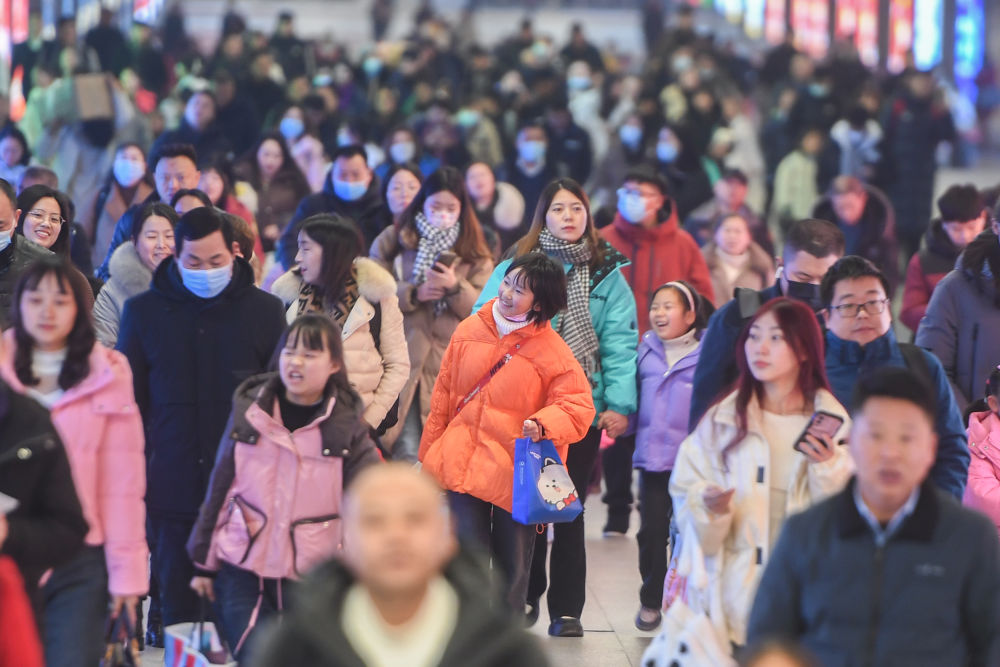 1月26日,在武漢漢口火車(chē)站,旅客在春運(yùn)首日出行。