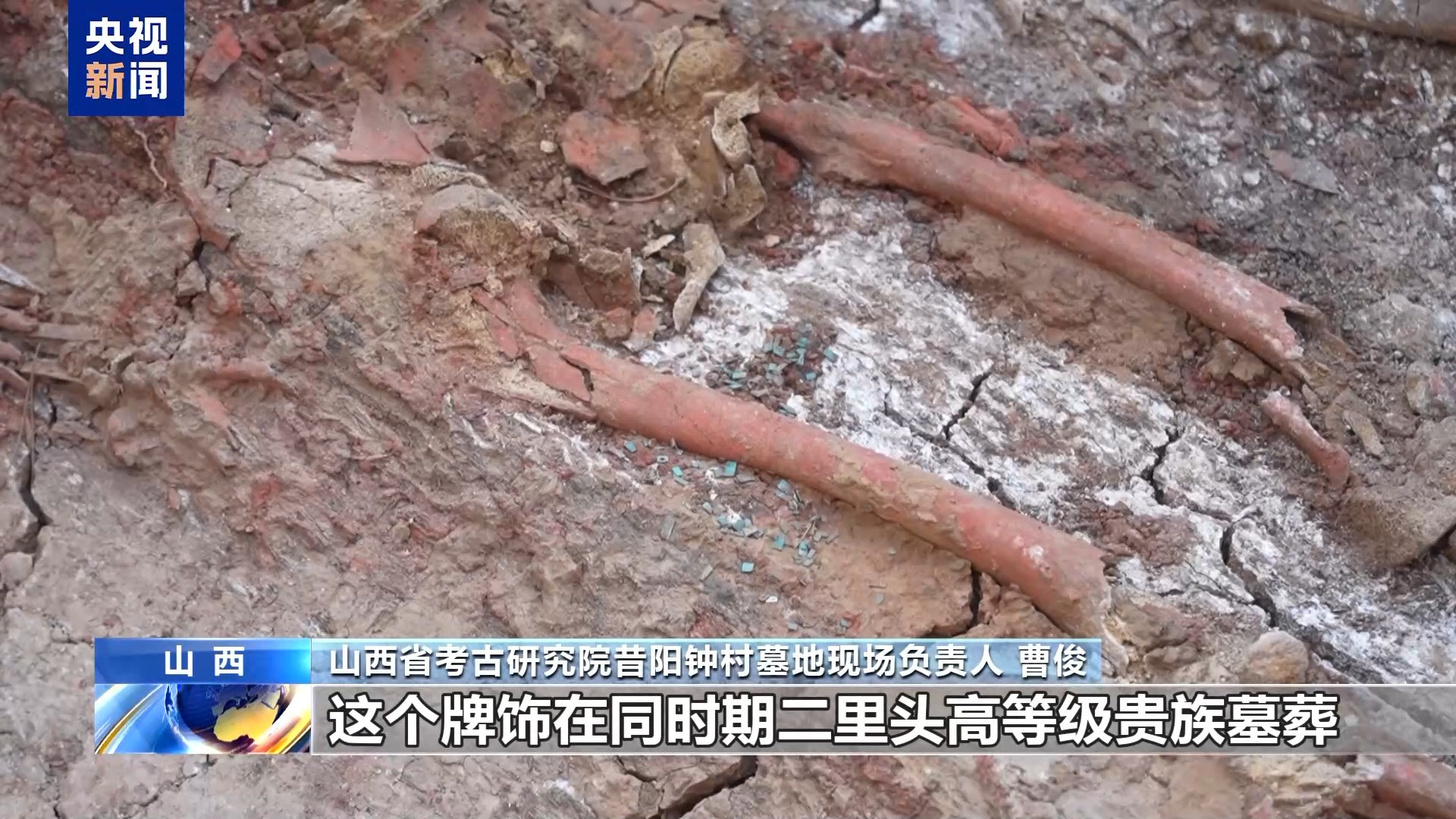 三星堆遺址工作站副站長 許丹陽:有一件玉人像,和長江中游地區(qū)的肖家屋脊文化出土的玉器有相似之處,表明與長江中游地區(qū)也有聯(lián)系。新發(fā)現(xiàn)的這些玉石器,不僅增加了我們對三星堆玉石器種類的認識,而且也豐富了我們對三星堆與周邊地區(qū)文化交流的認識。表明以三星堆遺址為代表的古蜀文化與周邊地區(qū)同時期的文化存在著廣泛交流,也是中華文明多元一體格局的重要實證。 意外發(fā)現(xiàn)夏商大型墓葬 出土哪些文物? 此次國家文物局發(fā)布的重大項目中,還有一項考古發(fā)現(xiàn)是“意外之喜”??脊湃藛T今年在山西省晉中市昔陽縣鐘村社區(qū),意外發(fā)現(xiàn)了一處夏商之際高等級墓地,來看看目前出土了哪些文物? 目前已確認它是夏商之際黃土高原東部發(fā)現(xiàn)規(guī)模最大、等級最高的墓地,年代距今約3500年,其中5座夏商之際的高等級墓葬,是本次發(fā)掘的重要收獲。 山西省考古研究院昔陽鐘村墓地現(xiàn)場負責(zé)人 曹俊:這5座墓的規(guī)模非常大,單體墓葬的規(guī)模大,等級高,可以說是一個王級別的墓葬。這個規(guī)格的墓葬可以說是獨立于二里頭夏王朝之外的另外一個小的王國。 已發(fā)現(xiàn)的墓葬隨葬品均在器物箱中出現(xiàn),有陶器、漆器、綠松石器等50余件套,器類組合有管流陶爵、陶斝、陶觚、陶罐等。其中,10號墓的規(guī)模最大,墓主人是一名男性,身體涂有朱砂,頭頂覆有扇貝,左側(cè)股骨下隨葬綠松石嵌片牌飾,具有明顯的二里頭文化因素。 山西省考古研究院昔陽鐘村墓地現(xiàn)場負責(zé)人 曹?。?/strong>扇貝覆面這種喪葬習(xí)俗,目前是從先商,大概是二里頭四期,一直到商代晚期有使用。男性墓主人右側(cè)股骨位置,有一個由綠松石的小碎片,嵌片組成的一個綠松石牌飾。這個牌飾在同時期二里頭高等級貴族墓葬才隨葬的。我們經(jīng)過綠松石礦源的檢測分析,初步判斷綠松石的礦源來自 東秦嶺地區(qū)。這件綠松石牌飾的出土表明它與二里頭之間很可能存在很密切的文化交流的關(guān)系。