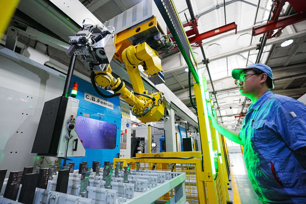 7月23日,在哈電集團哈爾濱汽輪機廠有限責任公司葉片加工智能化車間,工作人員在觀察智能機械臂運行情況。近年來,東北三省加大力度推進傳統(tǒng)制造業(yè)數(shù)字化改造,依靠科技創(chuàng)新“第一動力”,聚焦“卡脖子”領(lǐng)域,讓傳統(tǒng)產(chǎn)業(yè)增“智”提“質(zhì)”。(新華社記者 王建威 攝)