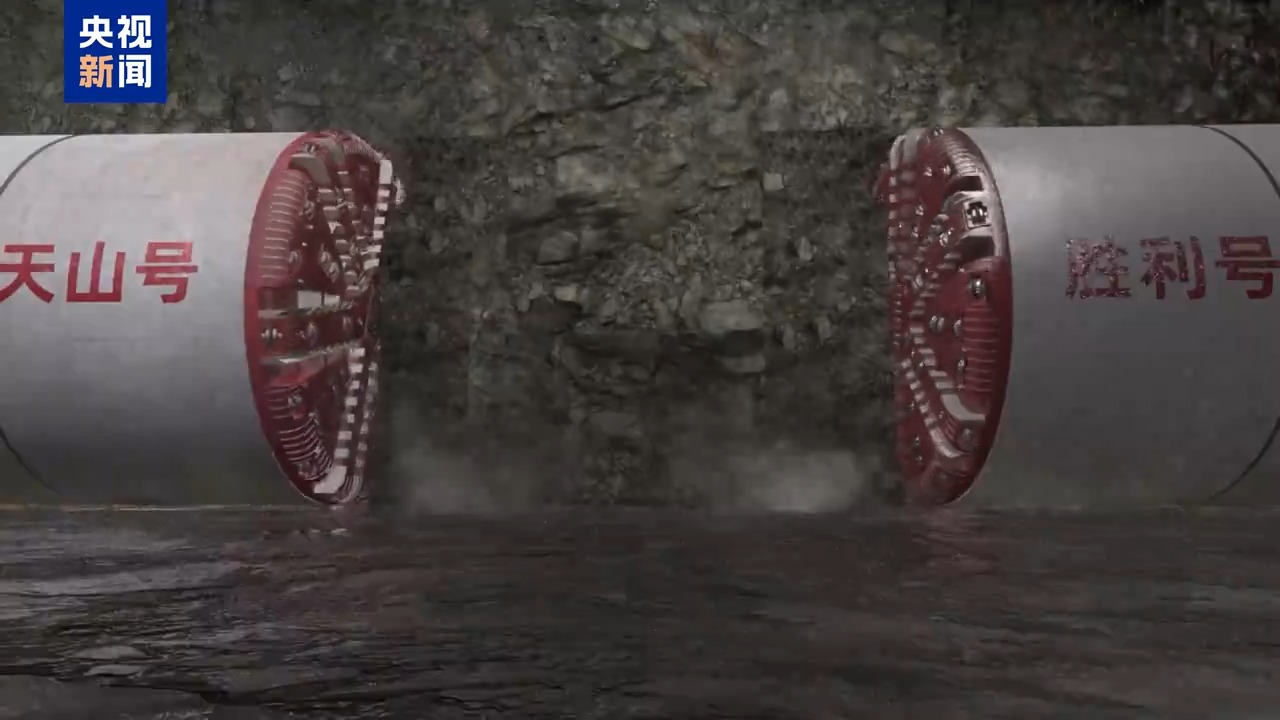 再看工具。兩臺(tái)“吞石巨獸”——“天山號(hào)”和“勝利號(hào)”硬巖掘進(jìn)機(jī)是為打通天山量身定做的。刀盤直徑8.43米,接近3層樓高度。工作時(shí),這對(duì)“雙胞胎”從中導(dǎo)洞的兩端朝中間“雙向奔赴”。打通天山可不容易,不僅隧道長(zhǎng)度破紀(jì)錄,還要穿越16條地質(zhì)斷裂帶,這就如同在豆腐腦里雕花。特別是在穿越F6地質(zhì)帶時(shí),36天的隧道涌水量,相當(dāng)于近30個(gè)標(biāo)準(zhǔn)游泳池的水量,掘進(jìn)速度一下就踩了急剎車,從每天35米銳減到每天只能走3到5米。