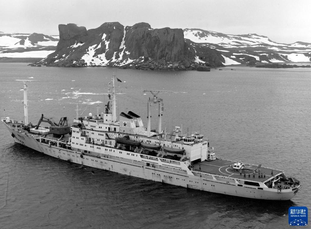 1984年12月26日,中國南極考察隊勝利駛抵南極洲喬治王島民防灣。這是“向陽紅10號”科學(xué)考察船。新華社記者 戴紀明 攝