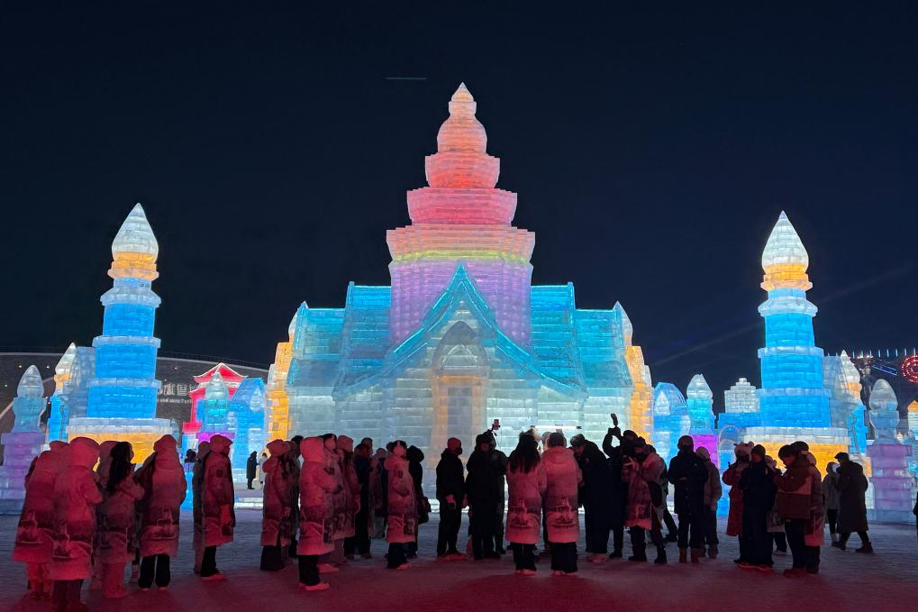 我國東北地區(qū)的冷與東南亞地區(qū)的熱,形成鮮明對比,吸引外國游客“一路北上”。在哈爾濱冰雪大世界,一座用冰復(fù)刻的“大皇宮”高21.5米,受到游客歡迎?!啊蕦m’晶瑩剔透,燈光下流光溢彩,太夢幻了!”泰國游客金金說。