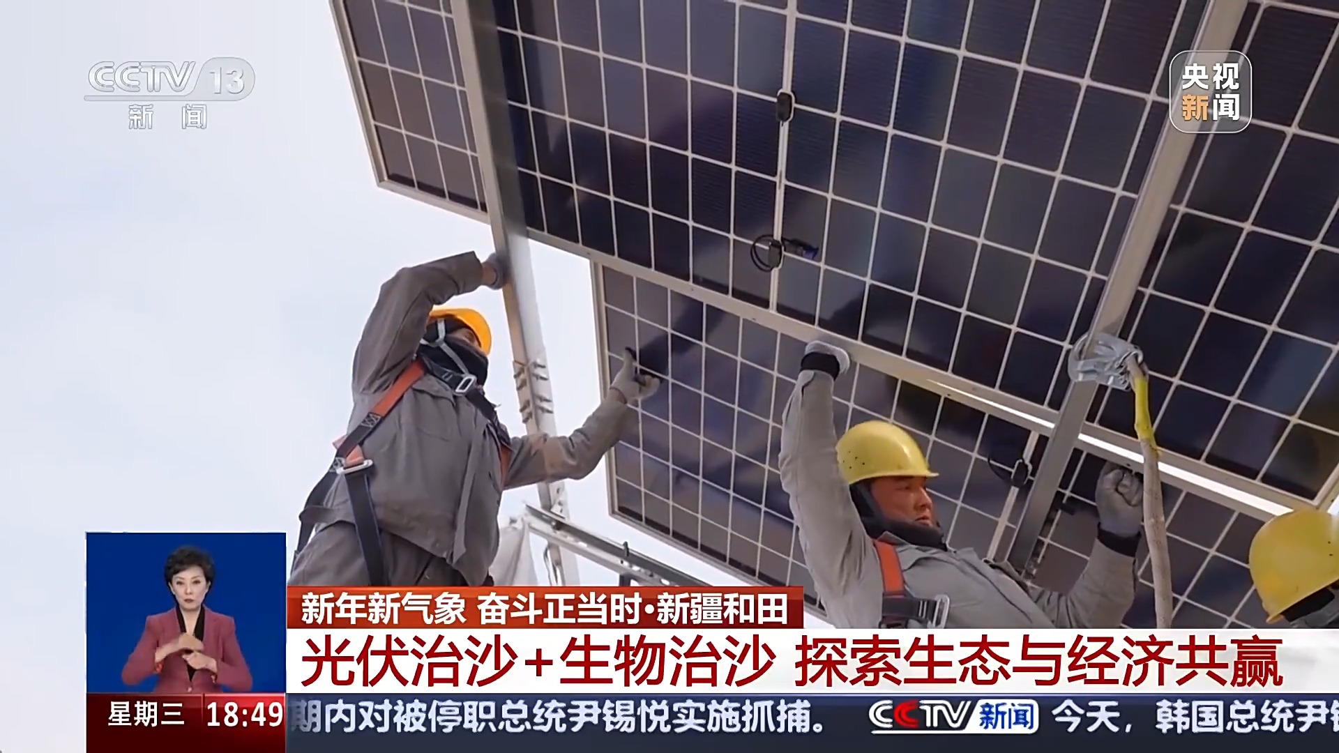 除了為生物治沙作準(zhǔn)備,塔克拉瑪干沙漠中還有不少光伏項目正在建設(shè),工人們加緊鋪設(shè)光伏板,到春天,光伏板下還會種上苜蓿、狼尾草等固沙植物,這處包含光伏治沙、生物治沙的鎖邊工程拓寬項目,也將成為新疆探索生態(tài)治理與經(jīng)濟發(fā)展共贏的一個新模式。