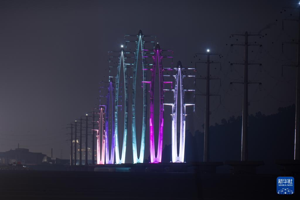 據(jù)介紹,該項目是中馬共建“一帶一路”合作項目,全長8.5公里,毗鄰檳威大橋。項目建設的31座輸電桿塔橫跨檳威海峽,其中6座標志性雙肢結構桿塔采用“檳榔果”外形設計并裝有景觀燈,呈現(xiàn)出獨特的視覺效果。