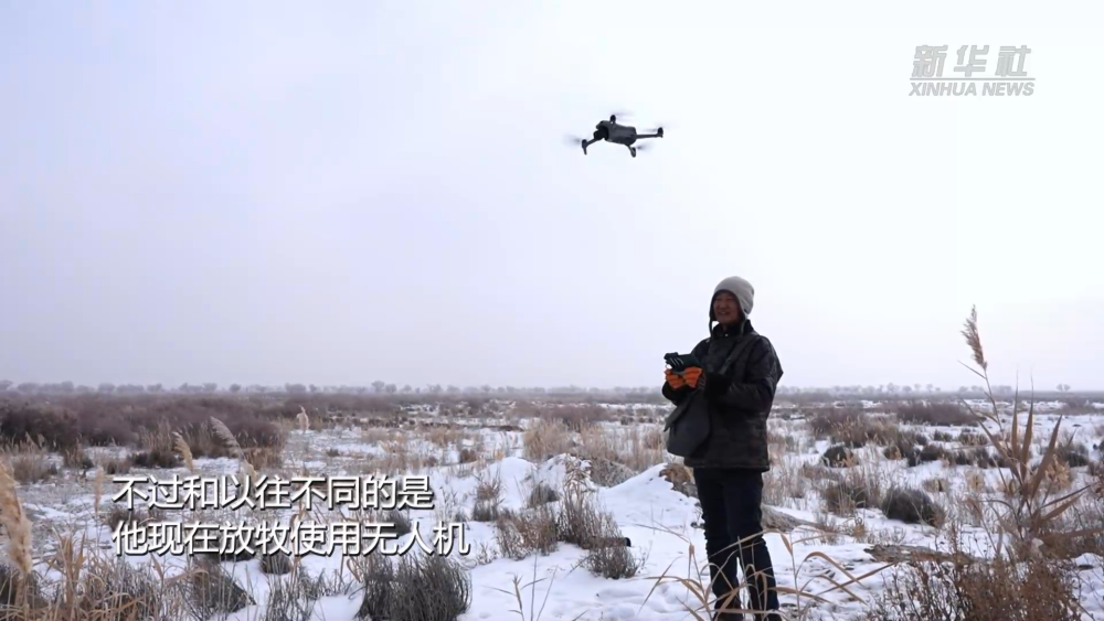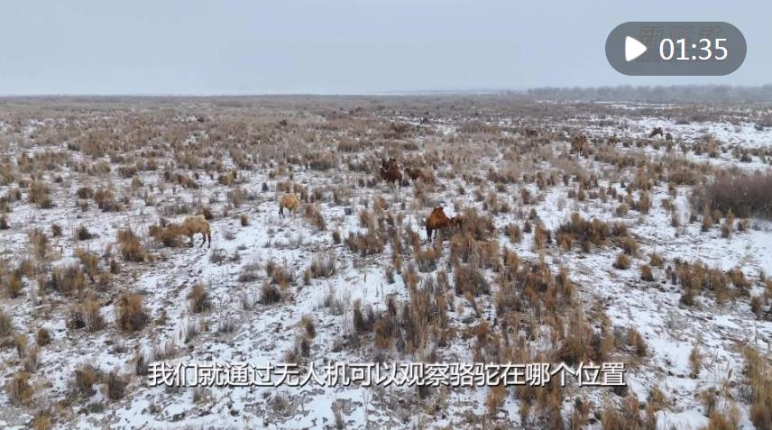 在新疆巴音郭楞蒙古自治州博湖縣,牧民道爾加拉每天都要把駱駝趕到戈壁灘上放牧,不過和以往不同的是,他現在放牧使用無人機。