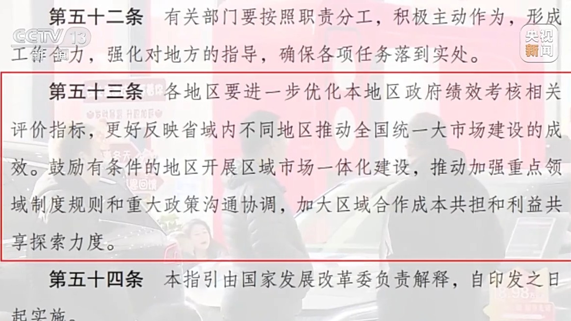 建設(shè)全國統(tǒng)一大市場,要求地方政府做到全國一盤棋,破除地方保護(hù)和市場分割。但人口和企業(yè)流動,會帶來經(jīng)濟(jì)數(shù)據(jù)和稅收的增與減,這也對地方政績考核標(biāo)準(zhǔn)提出了新的要求。為此《指引》提出,各地區(qū)要進(jìn)一步優(yōu)化本地區(qū)政府績效考核相關(guān)評價指標(biāo),更好反映省域內(nèi)不同地區(qū)推動全國統(tǒng)一大市場建設(shè)的成效。