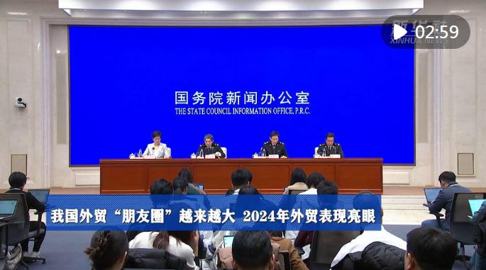 1月13日,國務院新聞辦公室舉行“中國經(jīng)濟高質量發(fā)展成效”系列新聞發(fā)布會,海關總署副署長王令浚介紹2024年全年進出口情況。