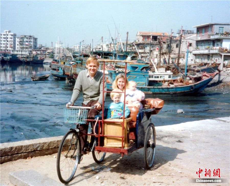 1988年,潘維廉騎著三輪車(chē)帶著家人走遍廈門(mén)的大街小巷。受訪者供圖