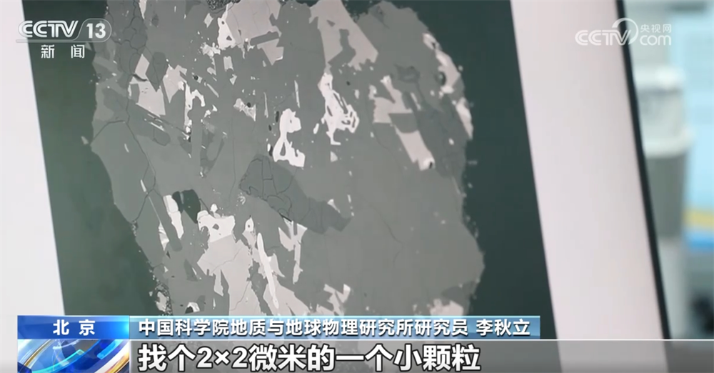 李秋立稱(chēng):“我們要在里邊首先找到記錄時(shí)間的小礦物,找出來(lái)之后變成離子激發(fā)出來(lái),它這里邊哪兒是定年礦物呢?要把它放到最小的這一顆白點(diǎn),是定年礦物。那么這顆巖屑的實(shí)物有多大?大概800微米,在這個(gè)800×800微米里邊找個(gè)2×2微米的一個(gè)小顆粒,在這么小的范圍可以激發(fā)它的,目前只有離子探針這個(gè)技術(shù),我們進(jìn)行了長(zhǎng)期訓(xùn)練,可以把它做到更小的范圍內(nèi)測(cè)得更準(zhǔn)的數(shù)據(jù)。”