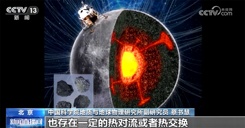 蔡書(shū)慧稱(chēng):“發(fā)現(xiàn)距今20億年的時(shí)候,也就是月球演化的偏中后期,它還存在一個(gè)非常弱的磁場(chǎng),強(qiáng)度是2—4個(gè)微特,不到現(xiàn)今地球磁場(chǎng)的10%。這說(shuō)明在距今20億年的時(shí)候,月球的內(nèi)部可能還是有一定的活力的,也存在一定的熱對(duì)流或者熱交換。”