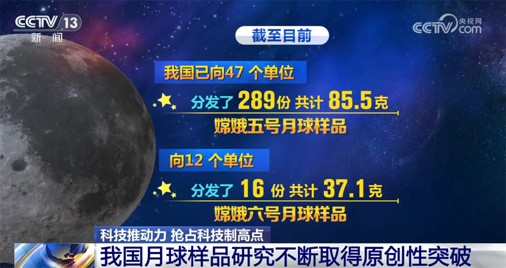 截至目前,我國(guó)已向47個(gè)單位分發(fā)了289份共計(jì)85.5克嫦娥五號(hào)月球樣品,向12個(gè)單位分發(fā)了16份共計(jì)37.1克嫦娥六號(hào)月球樣品。利用最新分發(fā)的嫦娥六號(hào)月球樣品,中國(guó)科學(xué)院國(guó)家天文臺(tái)和廣州地球化學(xué)研究所還在月背樣品特征、月球演化活動(dòng)等領(lǐng)域取得了一批重要成果。2025年,更多月壤研究項(xiàng)目正在陸續(xù)部署和開(kāi)展,各項(xiàng)研究加速向前,有望幫助我們認(rèn)識(shí)一個(gè)“全新”的月球。